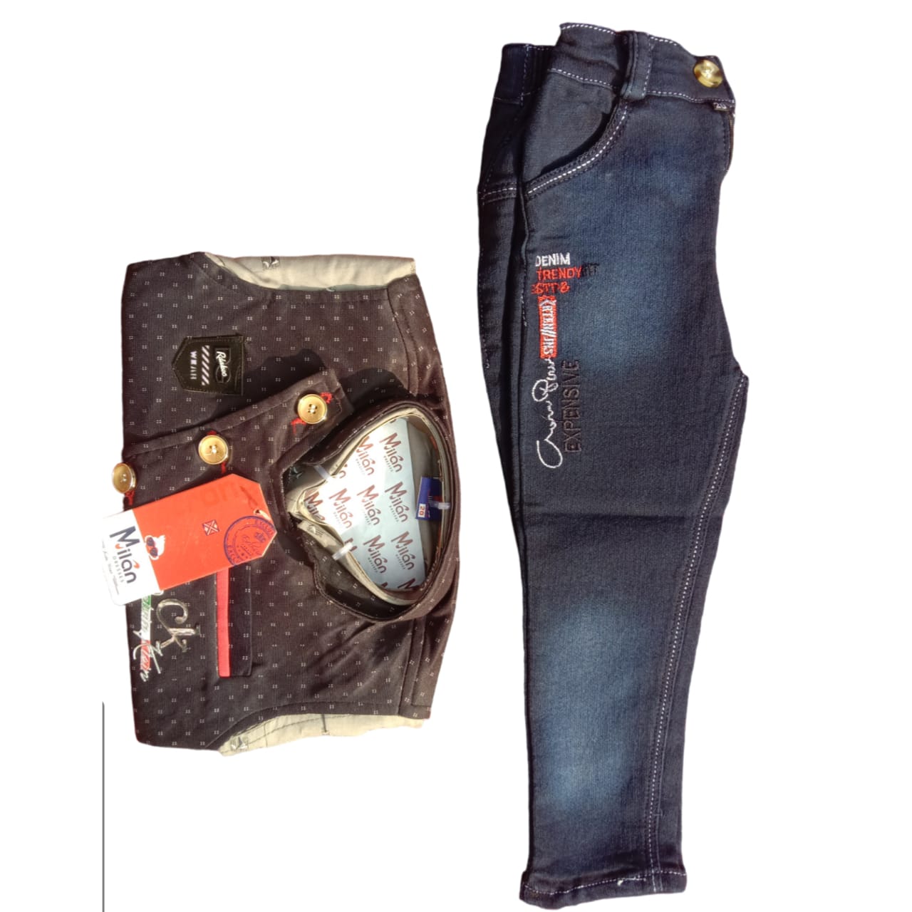 Product DetailsItem Name Kids wear (Baba Suit) Co lour ; Shirt - Concrete/ Coat -Black Size - Jeans - 20/ Shirt & Coat - 20