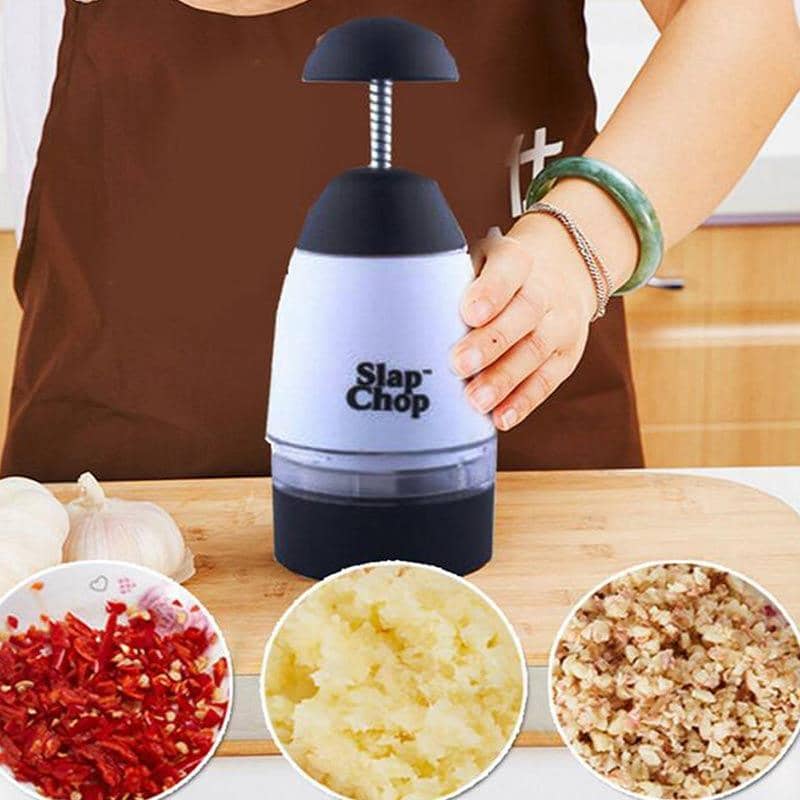 Perfect for all foods: With just one slap you have big chunks andthe more you slap the finer it gets. It’s the perfect way for making salad, pizza toppings, exciting tuna, breakfast to go, nuts and cookies for ice cream toppings, fruit salad, and many more Food Stainless steel & large cup holders
