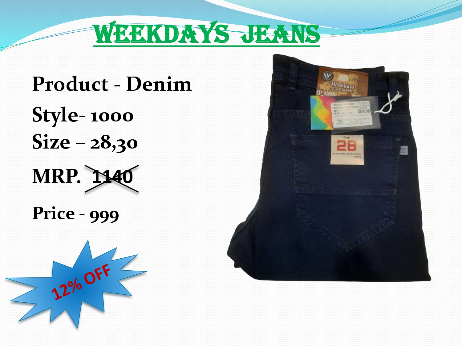Style - 1000 Product - Denim Item Name - Weekdays Jeans Very good quality jeans. Size - 28