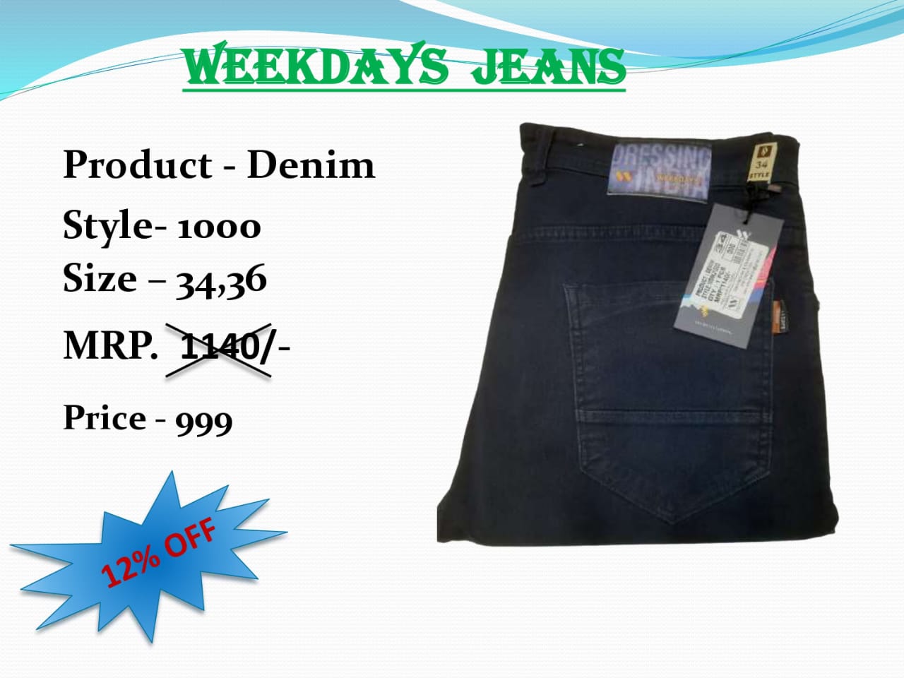 Style - 1000 Product - Denim Item Name - Weekdays Jeans Very good quality jeans Size - 34