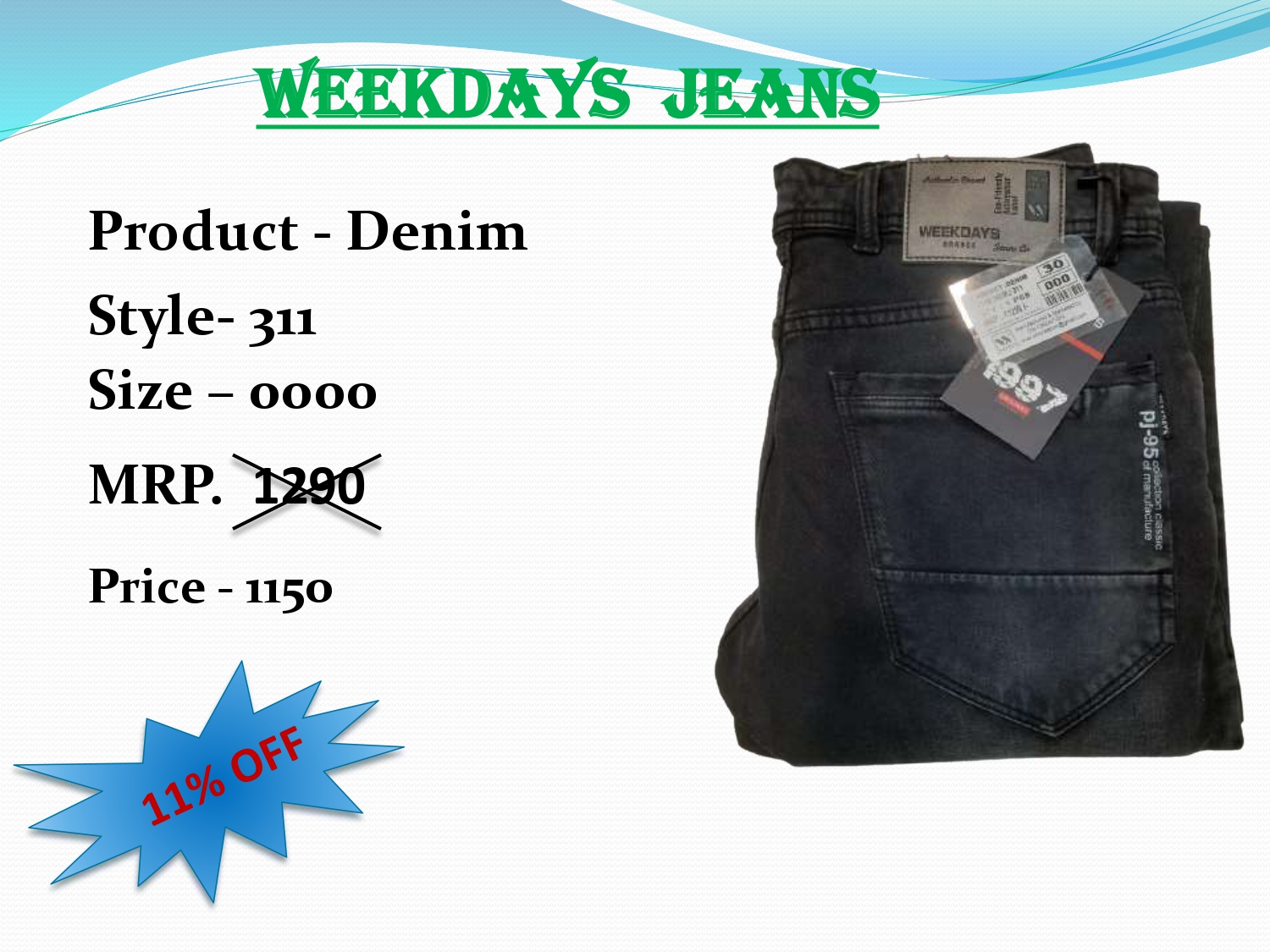 Style - 311 Product - Denim Item Name - Weekdays Jeans Very good quality jeans Size - 30